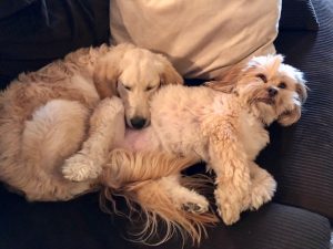 I adopted a sweet, healthy, mini Golden/Berna Doodle bundle of adorable-ness from Bailey’s Ranch in Peoria, AZ. She was absolutely beautiful. She loved to cuddle on top of me and gave great little hugs. She loved water and I couldn’t wait for the day I could take her swimming. She went with me everywhere, melting hearts and making friends and keeping me alive by her sweet presence. She was always glad to see me when I cam home, which was sincerely the main reason I needed her. Our little Shitzu/Llassa Apso ran from me when I walked through the door. It was so insulting! I’ve been told I’m a tad sensitive… Potato absolutely gave me a reason to live. I had to keep her alive!